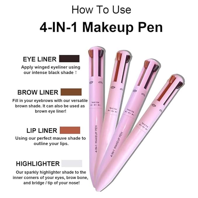 4-in-1 Makeup Pen: Eye Liner, Lip Liner, Highlighter, Eyebrow Liner – All-in-One Waterproof Pencil for Women – Beauty Tool for Travel