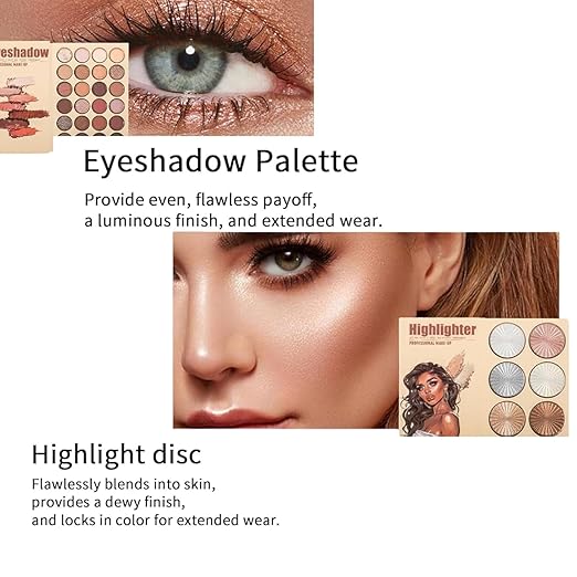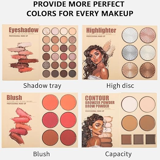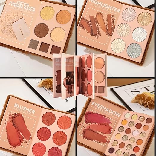 Essential All in One 4 Pages Face Makeup Book Palette Combo Kit Set – Eyeshadow Palette, Highlighter, Blusher, Contour, Bronzer, Eyebrow Color- Professional Kit for a Flawless Look (Women)