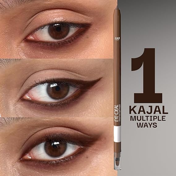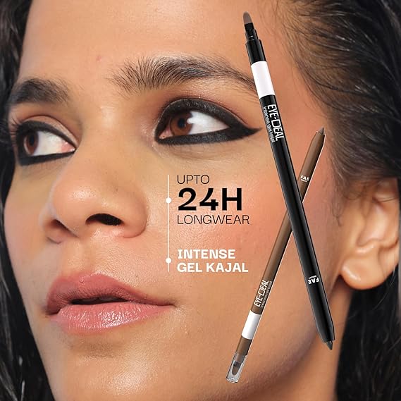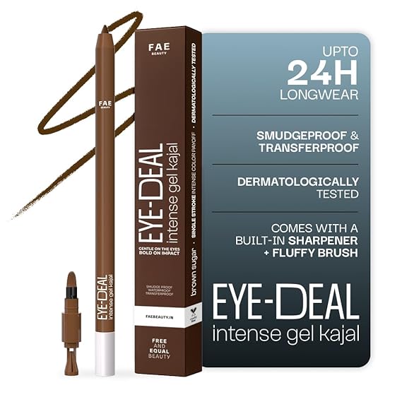 FAE Beauty 24Hr Longstay Eye-Deal Intense Gel Kajal -Smudgeproof, Waterproof, With Built-in Sharpener & Fine Bristle Brush | One Swipe Application, Non-Irritant, Ophthalmologically & Dermat Tested – Brown Sugar