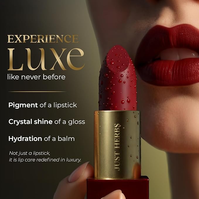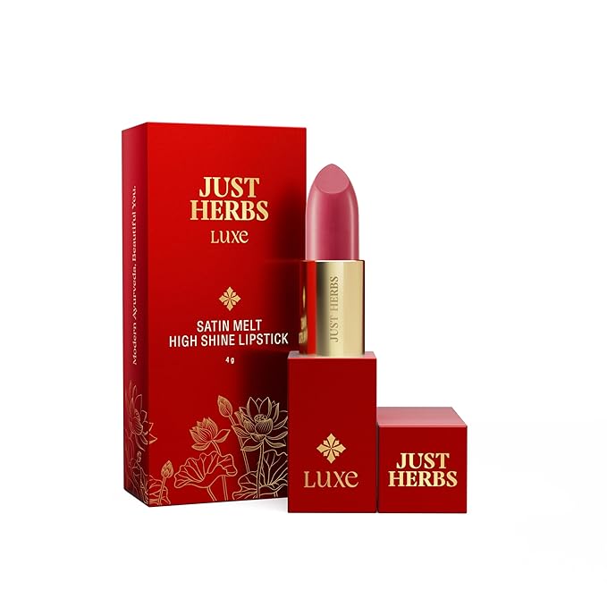 Just Herbs Luxe Satin Melt High Shine Lipstick | Luxury Makeup | Ayurvedic Formula | Long Lasting Shine | Ayurvedic Lipstick – 4 gm (06 BERRY ALLURE)
