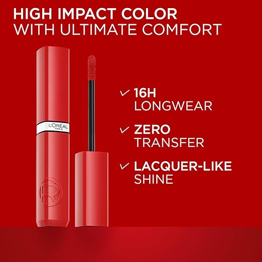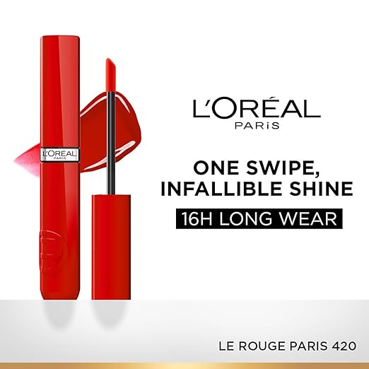 L'Oréal Paris Infallible Laque Resistance Lacquer-Like Shine Finish. 16H longwear lacquer lipstick. High-impact color, zero transfer - 420 Le Rouge Paris, 4mlL’Oréal Paris Infallible Laque Resistance Lacquer-Like Shine Finish. 16H longwear lacquer lipstick. High-impact color, zero transfer – 420 Le Rouge Paris, 4ml