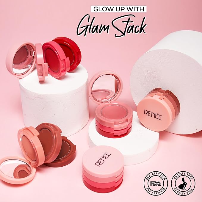 RENEE Glam Stack 3-In-1 Lip & Cheek Tint - Pink 4.5g - 3 Shades in 1, Rich Creamy Natural Seamless Finish, Smooth & Blendable Formula - Travel Friendly, Quick & Easy to UseRENEE Glam Stack 3-In-1 Lip & Cheek Tint – Pink 4.5g – 3 Shades in 1, Rich Creamy Natural Seamless Finish, Smooth & Blendable Formula – Travel Friendly, Quick & Easy to Use