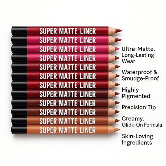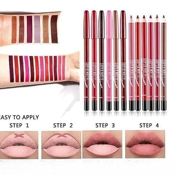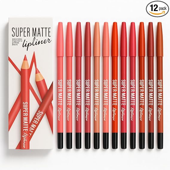Super Matte Lipliner Set Of 12 - Pencil Waterproof, Nude, Professional Multicolored Long-Lasting for Women and GirlsSuper Matte Lipliner Set Of 12 – Pencil Waterproof, Nude, Professional Multicolored Long-Lasting for Women and Girls