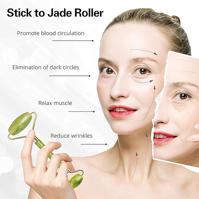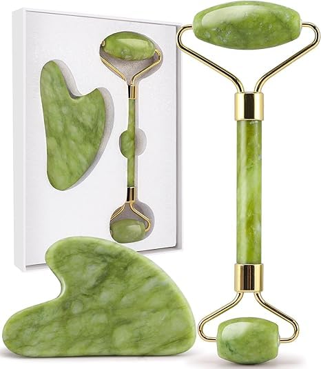 TYROCX Gua Sha Facial Tools & Jade Roller Massager Set for Skin Care, Reduce Puffiness and Improve Wrinkles, Guasha Tool for Face, Gua Sha Stone Self Care Gift for Woman Man