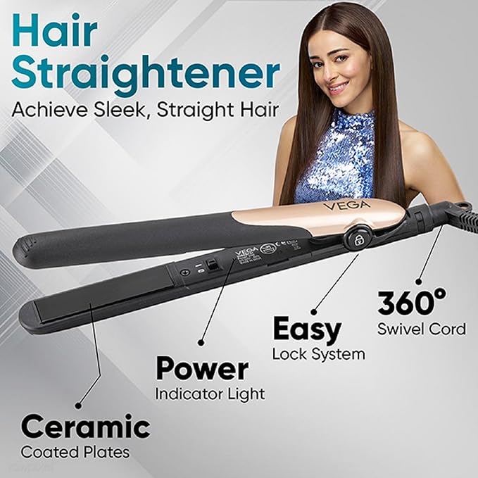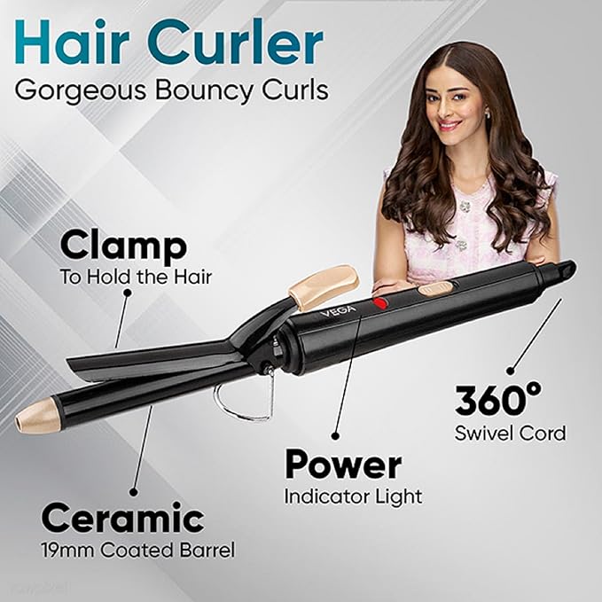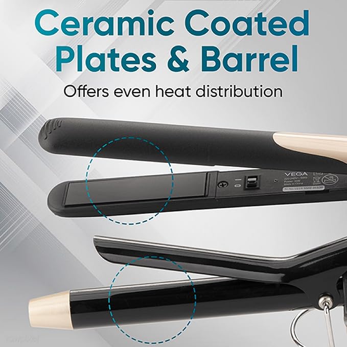 Vega Miss Versatile Styling Set Straightener, Curler & Dryer Gift Combo for Women, 1000W Hair Dryer with 2 Head/Speed Setting, Hair Straightener & Curler Comes with Ceramic Coated, (VHSS-03), Black